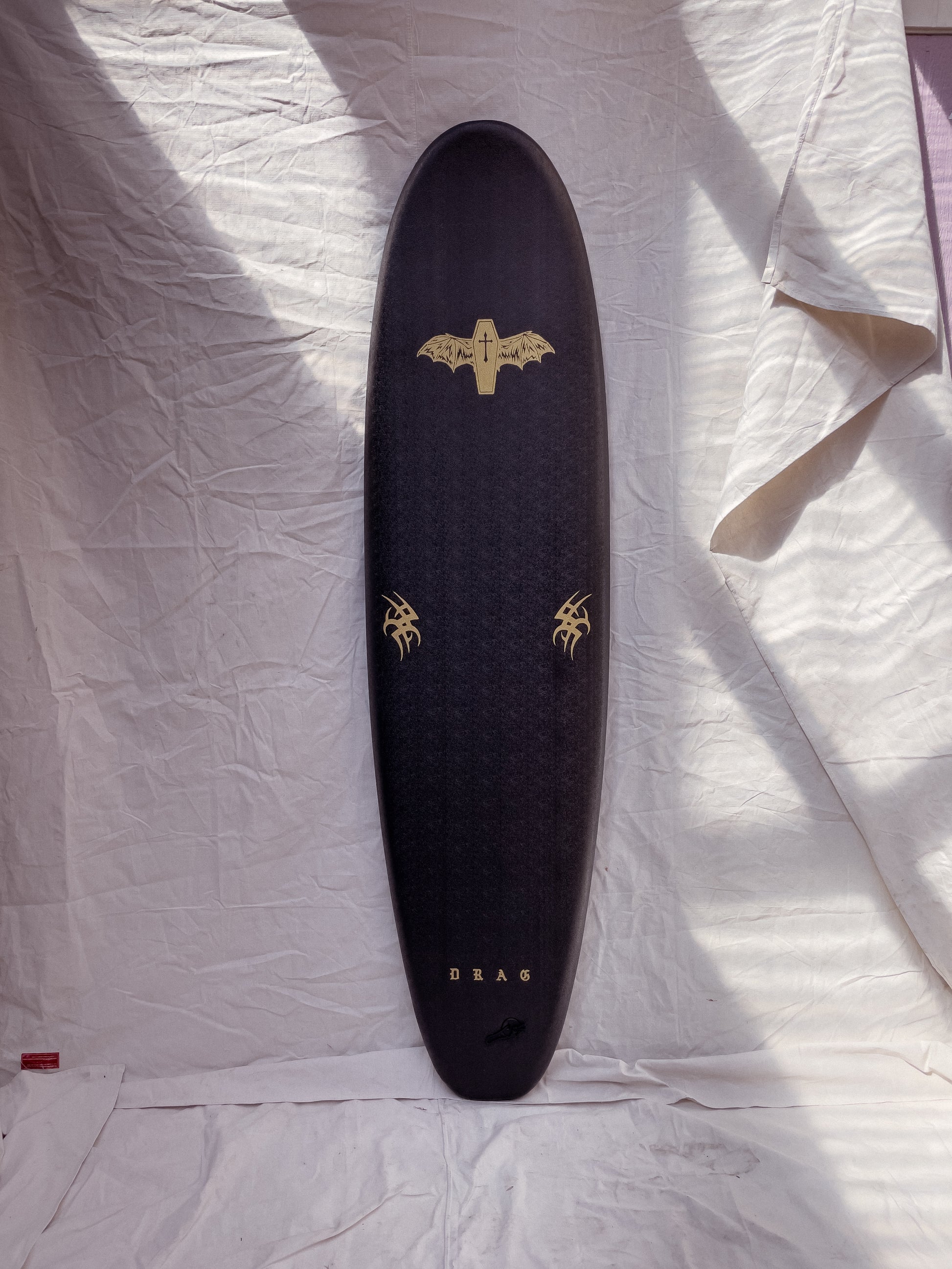 Your lifestyle choices pushing you to an early grave? But you're way too cooked to take action?! No worries! Embrace your impending death on this tri-fin liquid tomb, or corpse out finless!