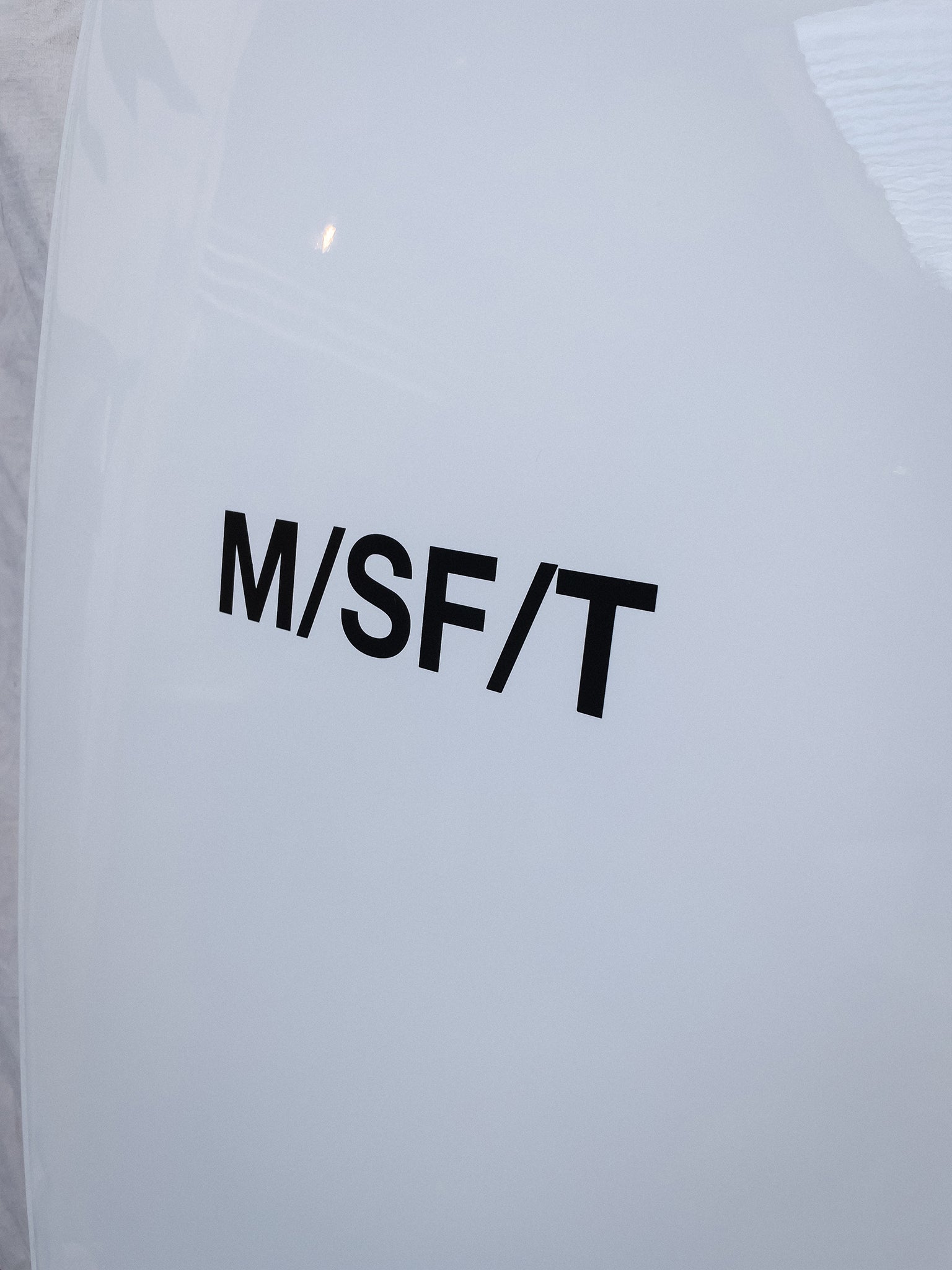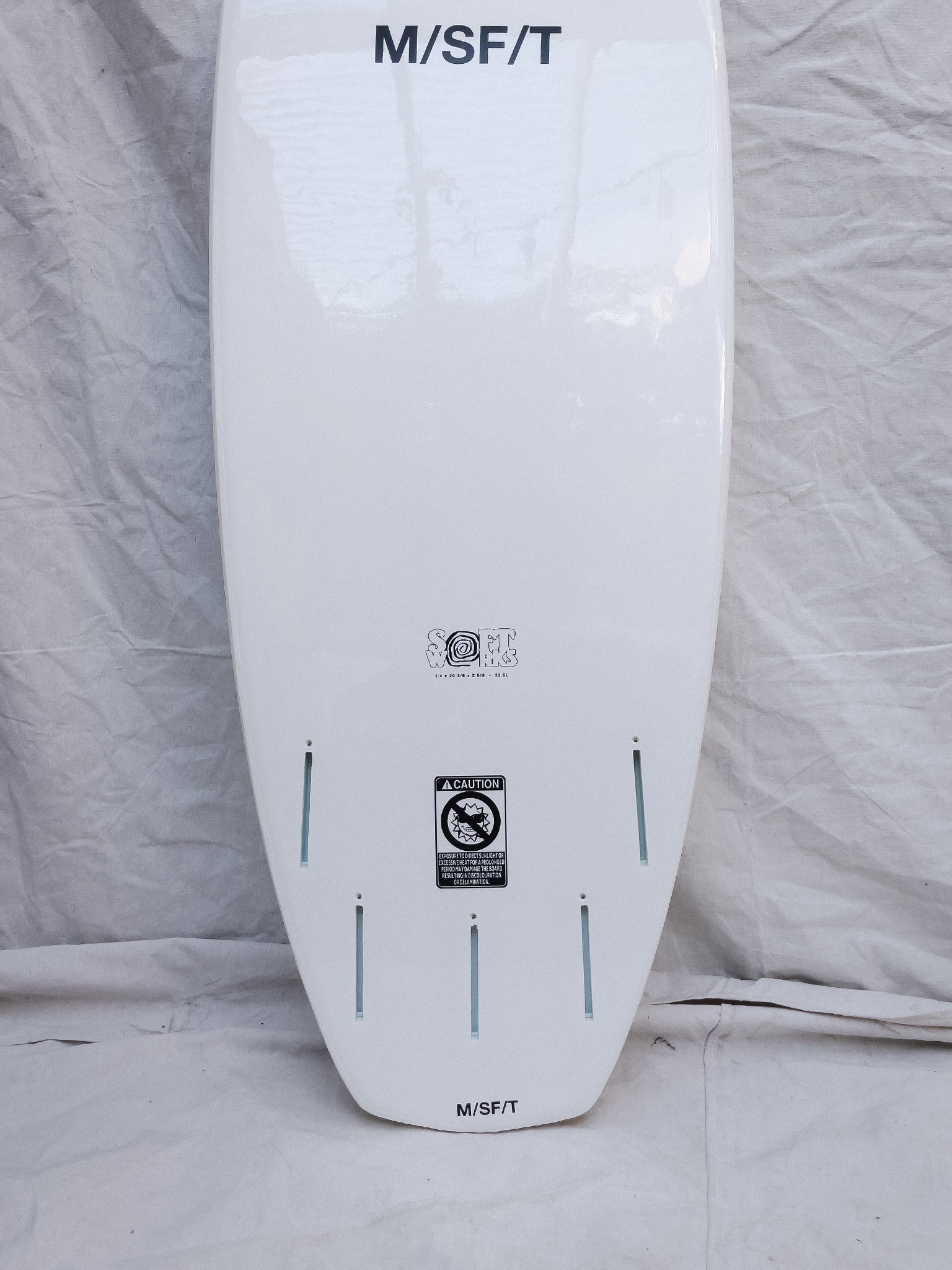 M/SF/T ‘SOFT WORKS’ ~ premium, performance “soft” boards. Constructed from hand finished EPS blanks, glassed in EPOXY resin with 2 x layers of 6oz fibreglass on the deck, and 1 x layer of 6oz fibreglass on the bottom. Reinforced with a vertical fiberglass flex column down the centre of the board, then moulded in a high density IXPE foam deck + HDPE slick bottom. Models are fitted with FUTURES fin system, and include a composite 5 fin set with purchase.