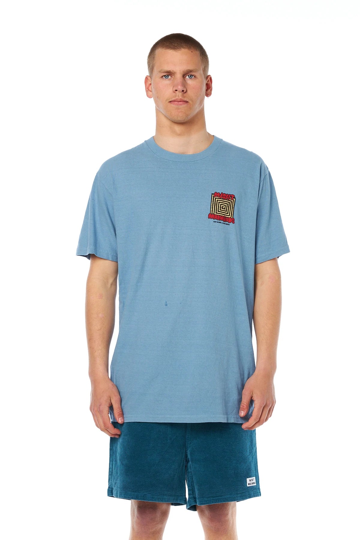 Our 'Loothole 50/50 Reg SS Tee' in Pigment Washed Blue features left chest print & back print. Constructed from 50% Cotton Jersey & 50% Recycled Cotton in our regular tee fit. Finished with a rib knit neck band, internal back neck & premium trims.